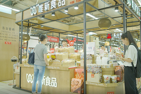 經(jīng)過二十多年內(nèi)地市場的培育,現(xiàn)在,唯新食品的專柜(店中店)已成雨后春筍立足于全國各大賣場。2016年正式啟動“千店計劃”,目前擁有各類專柜400余家,年銷售額占總體銷量15%。通過專柜的不斷開設(shè),區(qū)域覆蓋越來越密集。專柜運營的同時,將線下線上流量打通,打造一套具有唯新特色的新零售模式。