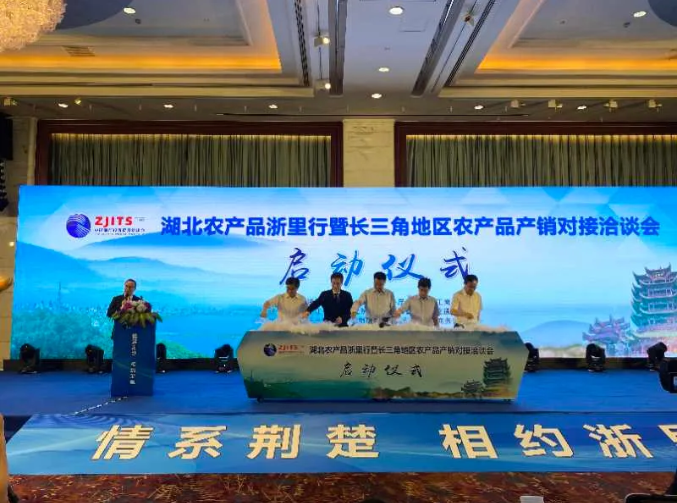 “情系荊楚,相約浙里”湖北農(nóng)產(chǎn)品浙里行暨長(zhǎng)三角地區(qū)農(nóng)產(chǎn)品產(chǎn)銷對(duì)接洽談會(huì)啟動(dòng)儀式于今日上午在黃龍飯店舉行,該活動(dòng)全力助推湖北農(nóng)產(chǎn)品暢通銷售渠道,進(jìn)入浙江及長(zhǎng)三角市場(chǎng)。湖北省商務(wù)廳廳長(zhǎng)秦軍、浙江省商務(wù)廳廳長(zhǎng)盛秋平等人出席此次會(huì)議。
